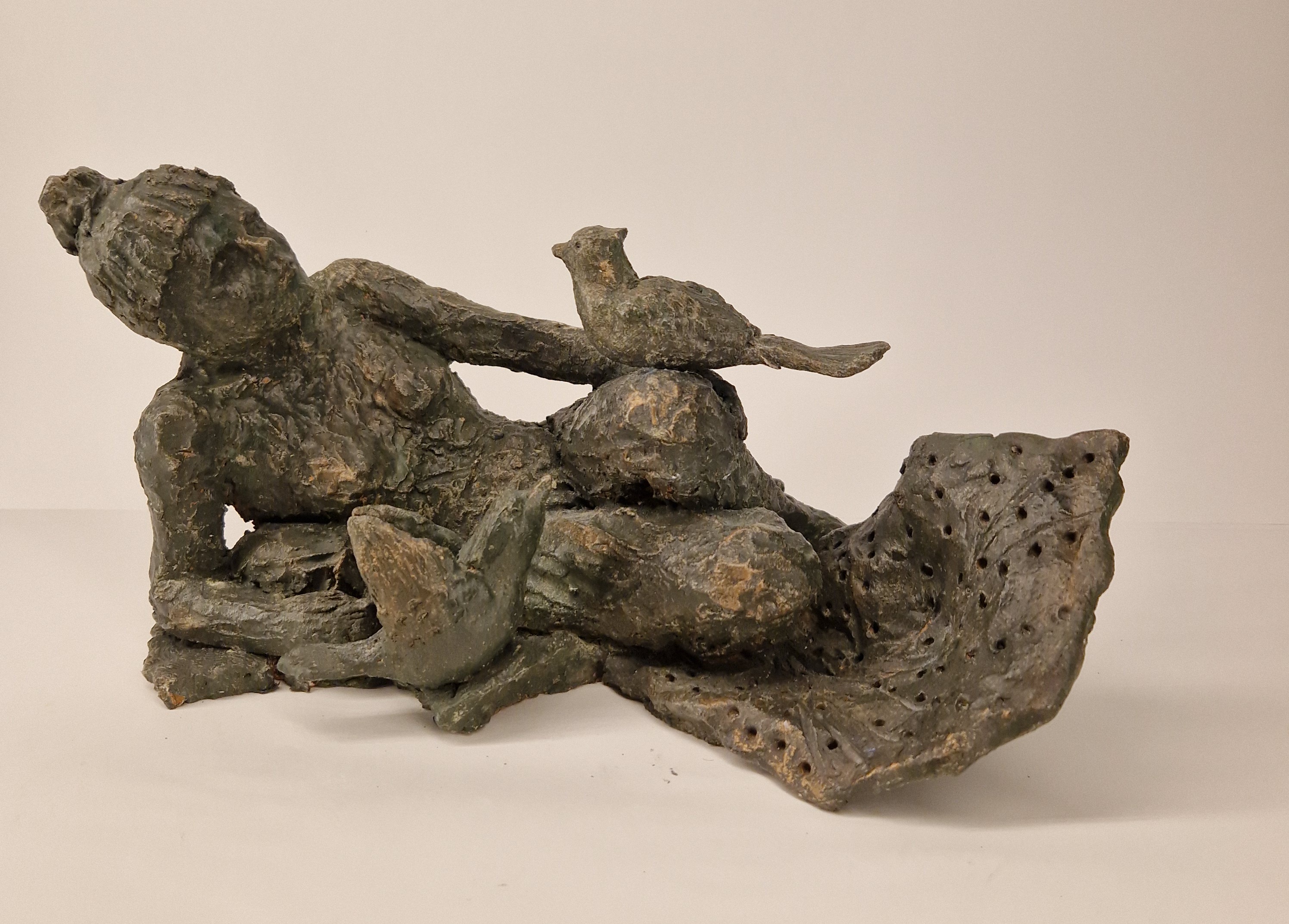 Terre cuite patinée haut 30 cm X 23 cm X 17 cm